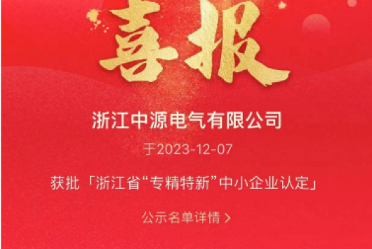 近日,浙江省經(jīng)濟(jì)和信息化廳公布2023年度浙江省“隱形冠軍”企業(yè)名單,其中智慧城企業(yè)浙江中源電氣有限公司入選。